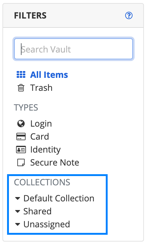 A collection is a shared container of passwords, identities, notes and cards. Any object created in a collection is visible by all collection members. To keep your item private, do not share it with a collection.